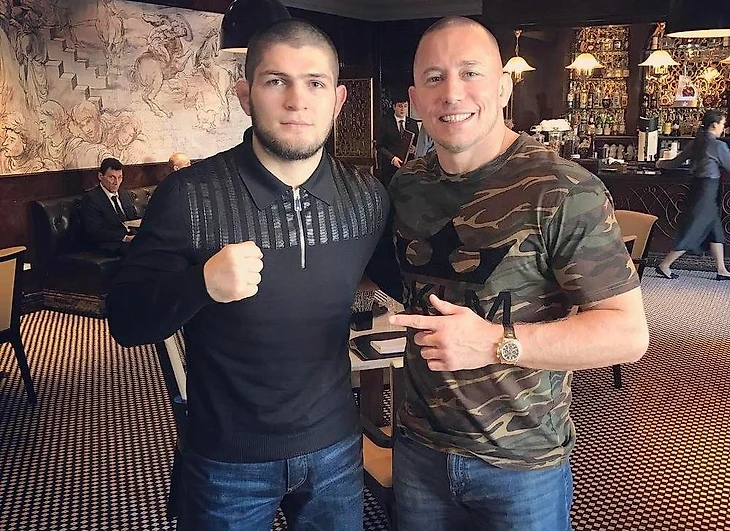 Бывший обладатель титулов UFC в среднем и полусреднем весе, Джордж Сент-Пьерр на встрече с болельщиками в Париже перечислил величайших бойцов в истории смешанных единоборств, не забыв включить в список непобежденного российского легковеса Хабиба Нурмагомедова: