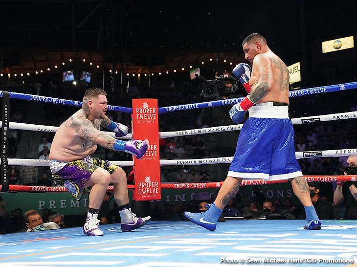 Года два назад я бы с уверенностью предположил победу кубинца, но сейчас спад на лицо. В то же время у Руиса большой простой и он тоже в прошлом поединке не блистал. Оба бойца предпочитают вести бой на ближней дистанции, у Энди отличная ручная скорость, но в отличие от Чарльза Мартина он всё-таки не такой уж большой панчер. По антропометрии есть преимущество Ортиса (на 5 сантиметров выше и на 10 сантиметров длиннее руки.) И если он всё-таки решит вести бой вторым номером, то его шансы значительно возрастают. И хоть кубинец и сдал, но думаю, что всё-таки на Руиса его ещё хватит…