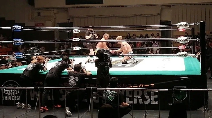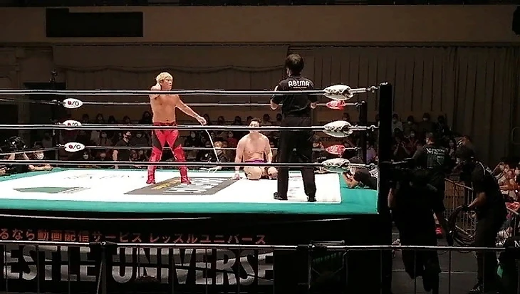Аккуратный Фунаки конечно смог выбраться, потому что со стороны Кайто это было очень дерзко. Масакацу доминировал в матче не только за счёт своей борьбы, но и за счёт ударной техники. У Кайто получалось иногда контратаковать дропкиком, но Масакацу уверенно возвращал себе доминацию. Мне понравился реверс драгон скрю от Фунаки, который он взял из боя Муто и Кайто. Было классно наблюдать за обменом палм страйками. Концовка же получилась невероятная.