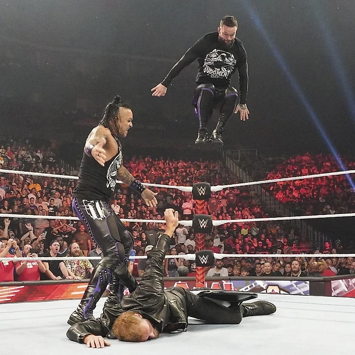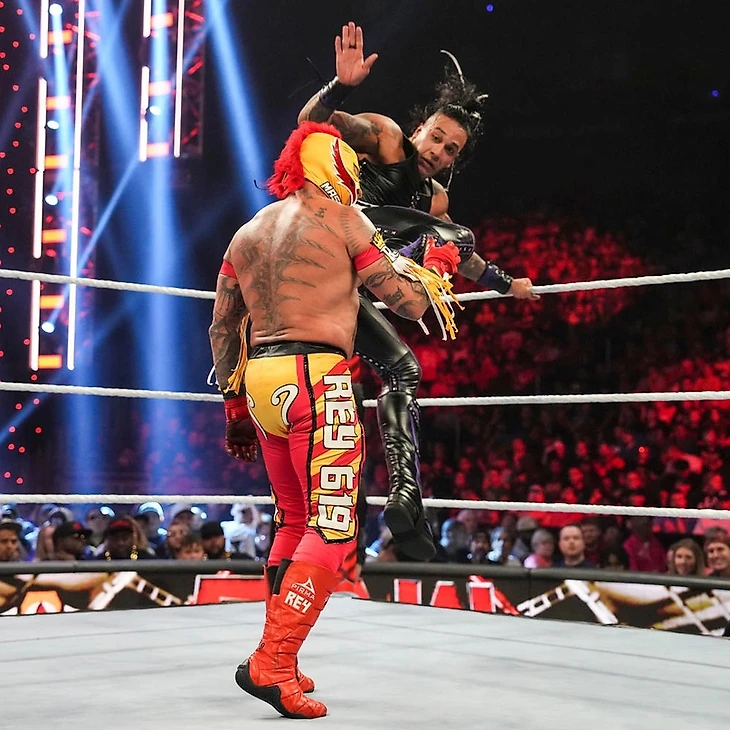 Рестлеры вернулись в четырехугольник, где Рей провел seated senton и спрингборд мунсолт до 2. Вновь отец столкнулся взглядом с сыном, провел еще несколько ударов, но Прист шарахнул вариацию snake eyes. Thrust kick в голову до 2, и очередной забег в угол Мистерио встретил бутом, проведя tornado DDT. Восхождение на третий канат Прист прервал, но Рей отбился от чего бы то ни было, проведя суперхарриканрану до 2. Рей подготовил противника к 619, однако Дэмиэн увернулся и провел спиннинг хил кик. Razor's Edge Мистерио перевел в харриканрану, четко уложив Приста на канаты, но провести 619 помешала фигура Доминика, возникшая на апроне. Рей какое-то время посмотрел ему в глаза, потом вырубил попытавшегося вмешаться в бой Балора и обратил внимание на Рипли. Прист за это время успел отдохнуть и провел жесткий лэриэт. South of Heaven ознаменовал поражение Рея. После финального гонга Judgement Day собрались в четырехугольнике, встали над поверженным Реем, и Рипли сказала, что теперь, когда Дэмиэн покончил с Мистерио, на пути Judgement Day остался только один человек. И Доминик отправит его обратно на пенсию. Доминик, со слов Рии, бросает вызов Эджу на бой один на один через неделю.