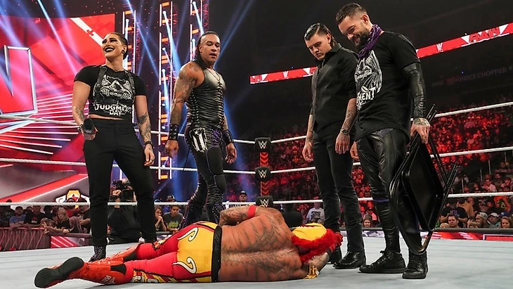 Знаете, у меня двоякое отношение к этому сегменту. Потому что, во-первых, чисто в смысле исполнения и наполнения он получился хорошим. Однако мне хотелось большего. Мне хотелось услышать, в чем мотивация Доминика. Я догадываюсь, какая может быть у него мотивация в сложившейся ситуации, но я хотел бы услышать это от него. Хотел бы понять, почему он все-таки присоединился к JD, увидеть, как это произошло (ибо арену в Кардиффе он покинул в одиночестве). Ну и за Judgement Day как-то обидно. Нет, правда, у них крутой состав, они приобрели какую-то форму как объединение, но ходят по замкнутому кругу: круто показывают себя в сегментах, но все равно проигрывают решающие матчи. То есть, их сложно воспринимать всерьез, хотя хочется. Так что сегмент хороший, но то, чем он окружен, не вселяет в мою голову оптимизма.