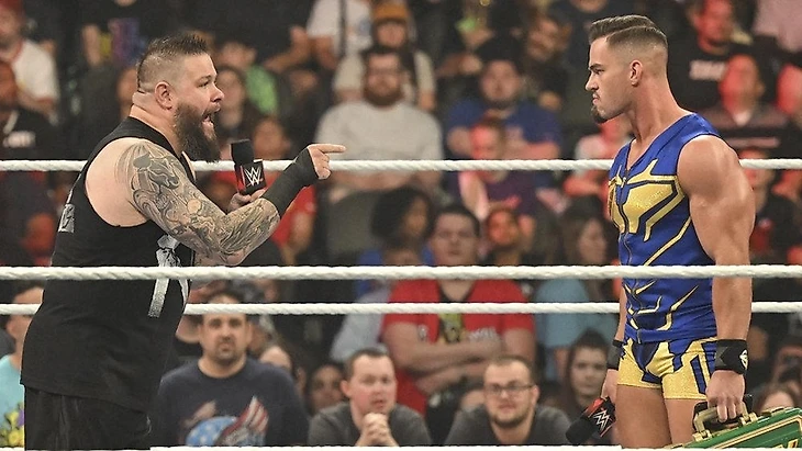 Пока «КейОу» расхаживает по шоу, называя себя «Prizefighter», он не выигрывал этих самые призы, то есть, титулы уже несколько лет, а Тиори уверенно поднимается по лестнице успеха и делает вещи, которые Кевин не в состоянии сделать, например, выигрывает кейс MitB. Остину даже жаль Кевина, поэтому он предлагает следующее: Оуэнс будет первым человеком, которого Тиори победит, когда станет неоспоримым чемпионом. Оуэнс вернулся к предыдущему тезису оппонента. Остин говорит, что Кевин не понимает, о чем говорит. Нет, Кев прекрасно понимает. Почему он уверен, что Рейнс и МакИнтайр ничего бы не оставили от Остина? Кевин выступал на одном ринге с ними обоими, причем с Дрю буквально пану недель назад, и шотландец даже не сумел победить канадца, более того, Кевин уверен, что победил бы, если бы не вмешательство Усо. Что касается Романа Рейнса, Оуэнс уже победил его 18 месяцев назад, и должен был стать чемпионом мира, и если бы не Джей Усо и Пол Хейман, Кевин бы прервал «легендарный» тайтл-рейн на отметке в 6 месяцев. А еще Оуэнс знает, что Остин стал «Мистером MitB» только потому что Кевин не участвовал в матче за чемоданчик. Если бы он участвовал, он бы уничтожил Тиори, проломил бы Остином лестницу, сорвал кейс и был бы парнем, который одолеет Романа. Остин признал, что звучит это круто, практически как сказка. Но мы живем в реальности. А реальность такова, что Тиори является человеком, которого выбрали как будущее компании, в то время как Кевин делает все, что возможно, чтобы остаться актуальным. Оуэнс даже согласился с этим. Он действительно делает все, чтобы оставаться актуальным, поэтому он так хорош, поэтому он получил то, что получил и оказался здесь (в WWE). А Тиори БЫЛ человеком, которого выбрали как будущее компании, но больше это не актуально. И вообще, Кевин один понимает к чему все идет? Он уверен, что в любую секунду может выбежать рефери и заскочить в ринг… что собственно и случилось. Сообщив судье, что тот мог бы быть побыстрее, Оуэнс сказал, что дальше должно произойти следующее. Один из парней должен сказать… А, это сам Кевин должен сказать: «Хватит разговоров, давай драться!». Что ж, так тому и быть.
