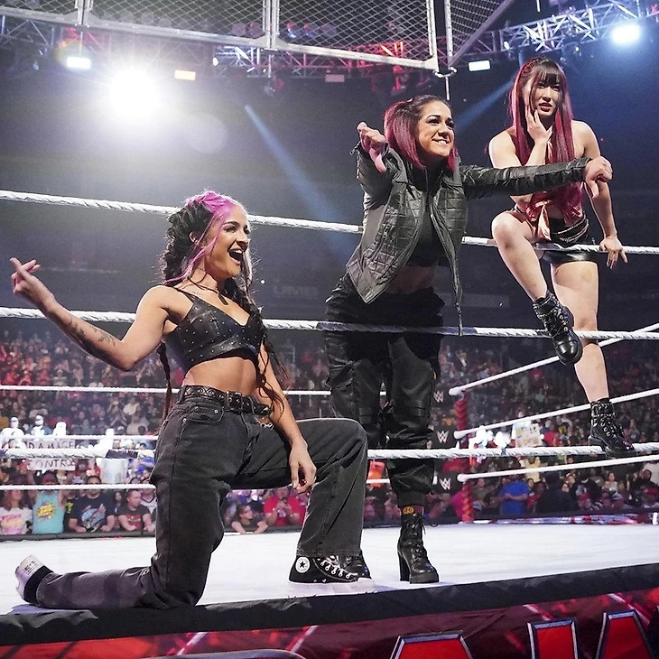 Бэйли, ИЙО СКАЙ и Дакота Кай вышли на ринг. Бэйли поздоровалась с «идиотами», то есть, с нами фанатами, представив себя и подруг как девушек, которые победили на Clash at the Castle Аску, Алексу Блисс и Бьянку Белэйр. Дакота предложила нам представить, что они могут сделать с остальным ростером, если вот так девушки обошлись с лучшими представительницами женского дивизиона. СКАЙ пообещала, что на следующей неделе они заберут женское командное чемпионство. Кай напомнила, что на прошлой неделе не она была легальной представительницей своей команды, поэтому Ракель и Алия могут еще недельку поделать вид, что являются чемпионками, а потом Дакота и ИЙО заберут то, что принадлежит им по праву. Бэйли сказала, что мы не можем представить, через что ей и подругам пришлось пройти из-за несправедливого завершения матча за командное чемпионство, однако они все равно смогли выиграть на PLE, а сама Бэйли удержала Бьянку Белэйр. Она сделала то, что никто в дивизионе не мог сделать на протяжении 300 дней, то есть, практически всего того времени, что Бэйли не было, а она и ее напарницы сумели сделать это всего за один вечер. И тут появилась сама Белэйр. Бьянка признала, да, Бэйли была лучше в субботу. И что делает сама «EST»? Она отставляет свою гордость в сторону и появляется сегодня на RAW. Ведь если Бэйли хочет вызвать ее на бой, Бьянка предоставить лидеру Damage CTRL такую возможность.