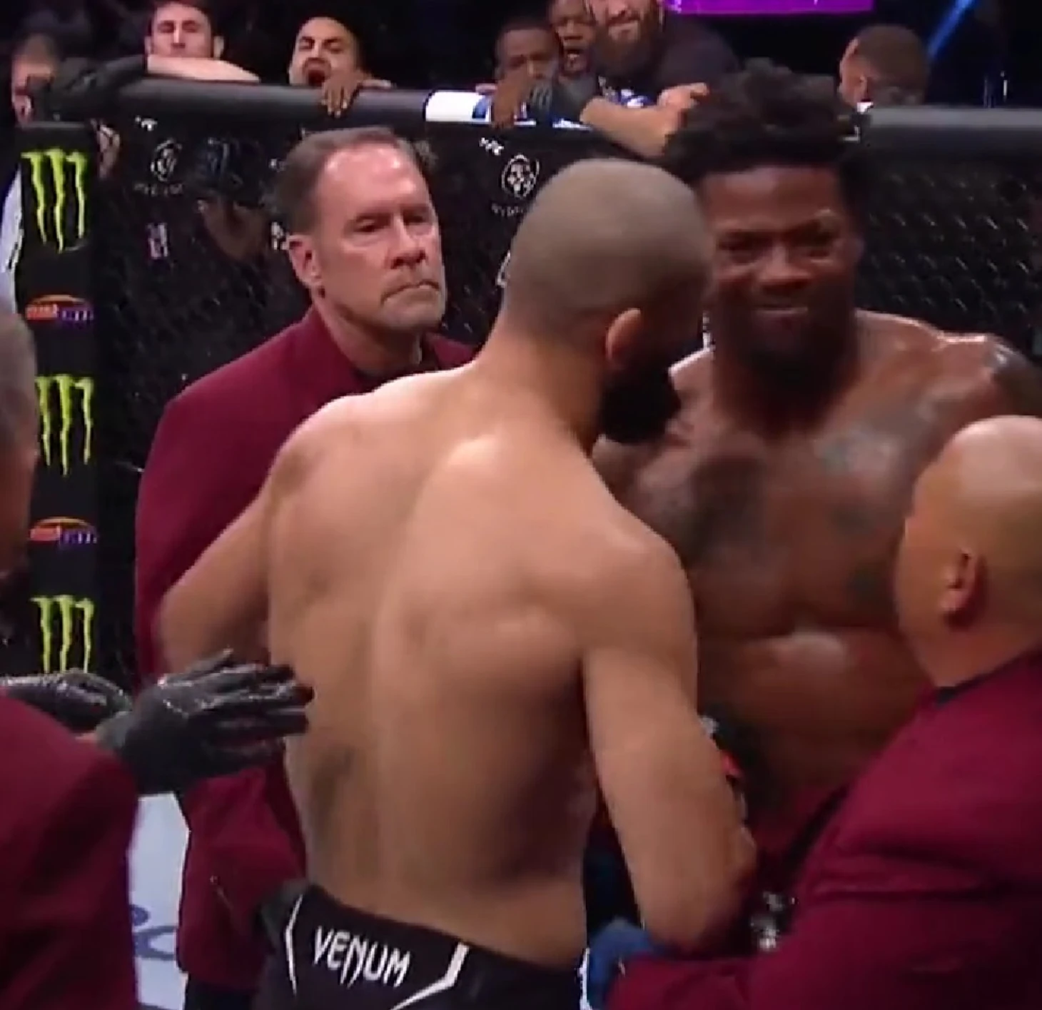 Но после боя Чимаев проявил уважение к сопернику. Сразу после сабмишена похлопал его по корпусу: