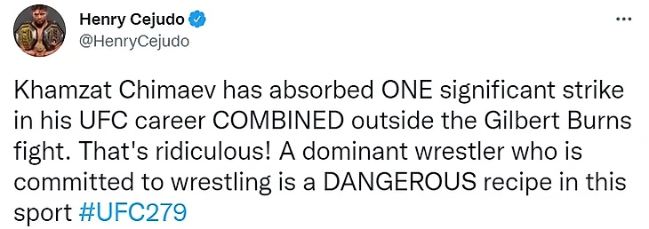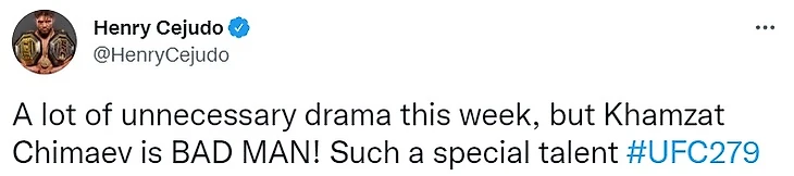 «Хамзат Чимаев неприкасаемый» (намек на то, что он снова не получил ни единого удара за бой)