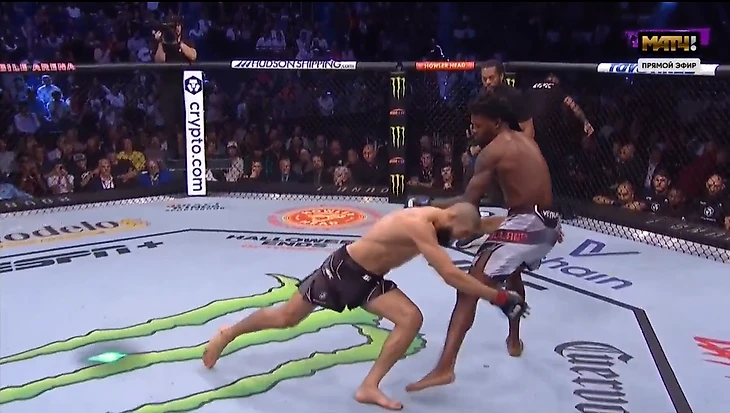 А вот отметить доминирование Хамзата - стоит. То, что поединок будет ярким, стало понятно даже по тому, как встретили шведо-чеченского бойца (зрители букали) и по тому, как Чимаев буквально влетел в октагон, а не спешно шёл к нему.
