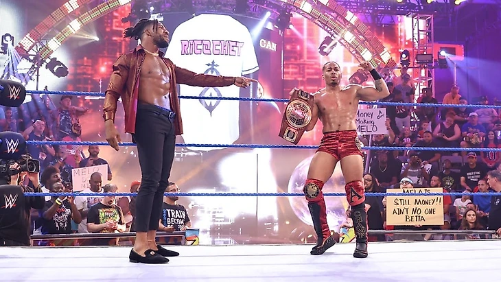 Кармело Хэйс (ч) против Рикошета - матч за североамериканское чемпионство NXT.