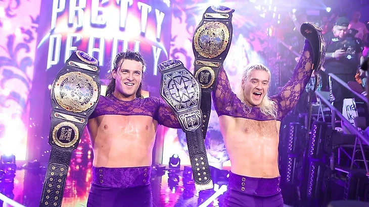 Брутус провел ему несколько ударов, затем еще и немецкий суплекс, сменившись с братом. Doomsday Creed Bomb, Коффи был нейтрализован, и слайдинг лэриэт от Джулиуса элиминировал Gallus. Остались только Pretty Deadly и Diamond Mine. Gallus же увела охрана. Джулиус передал тэг брату, тот придушил Элтона, позволив Киту себя атаковать. Рестлеры устроили обмен ударами, Уилсон вышел из него победителем, и PD сменились, проведя командную работу до 2. Еще немного доминирования над чемпионом, и он наконец отбился от Кита, передав «горячий» тэг Джулиусу. Тот стал уничтожать обоих соперников, но суплекс «легальный» Принц реверсировал в слипер. Gallus же дрались с Дженсеном и Бриггсом на стэйдже. Джулиус поднял оппонента на суплекс с задержкой, проведя-таки бросок, несмотря на проблемы с ногами. Вариация бэк суплекса последовала, но только до 2, и то ли умышлено, то ли нет ребята, дерущиеся за пределами ринга, вырубили рефери, пока охрана активно делала вид, что пытается их разнять. Крид провел дропкик Киту, получил дропкик от Принца, но поймал его слэмом. Подготовка, видимо, к слайдинг лэриэту, и Уилсон решил атаковать Джулиуса стулом, все равно рефери не видит, однако его вырубил Дэймон Кемп. Джулиус поблагодарил за помощь, однако получил стулом по спине от Кемпа уже в следующий момент. Uranage Backbreaker, и Дэймон вернул рефери в четырехугольник. Принц удержал Крида, и Pretty Deadly стали объединенными командными чемпионами NXT.
