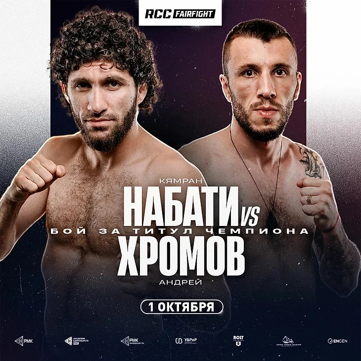 RCC Fair Fight анонсирует 19-й турнир: 1 октября фанатов жестких поединков ждет сумасшедшее шоу. Главный бой вечера будет титульным — первый чемпион мира дивизиона 66 кг Кямран Набати (14-0) выйдет на ринг Академии единоборств РМК ради защиты титула. Претендентом станет Андрей Хромов (16-1).