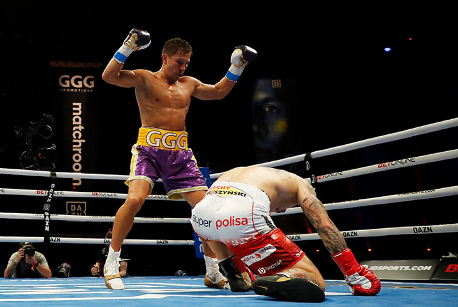 В третьем бою Геннадию опять достался боец без имени и регалий. Небитый, но не умеющий нокаутировать Камил Шеремета (5 нокаутов при рекорде 21-0) еще до боя вызывал вопросы. Складывалось впечатление, что поединок – чистая профанация для набивания статистики. Так и получилось: за семь раундов поляк упал аж в четыре нокдауна, а GGG делал в ринге буквально все, что ему хотелось. Перед восьмым раундом угловые сжалились над беднягой Камилом и остановили бой. Эффектная победа, но снова не имеющая ничего общего с чемпионским уровнем.