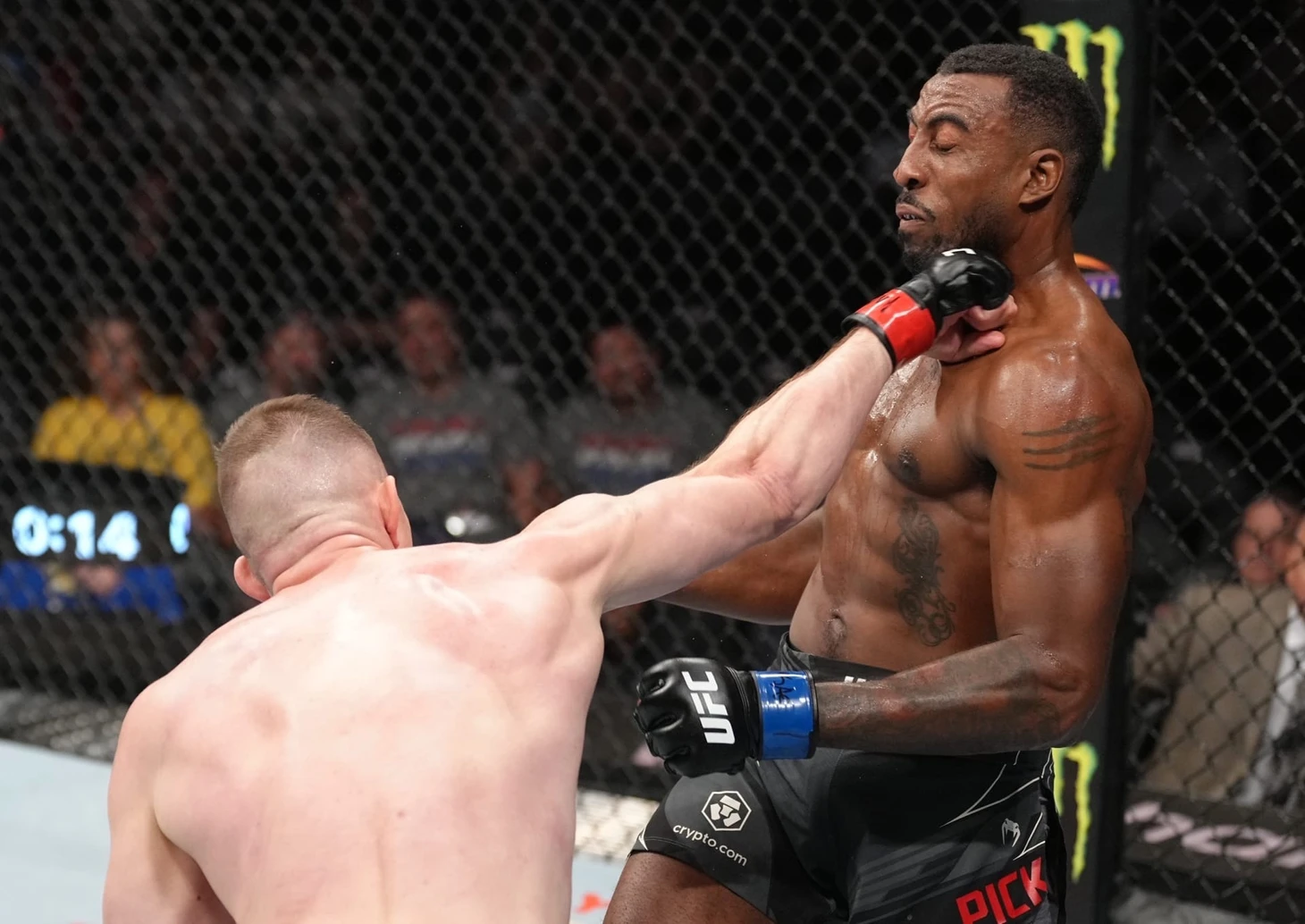 Многие скажут, что его борьба не менее слабое место. Да, Денис не показал партер уровня черного пояса по bjj, и на пурпурный не факт, что дотянул бы. В стойке, также и Алиасхаб и Икрам Алискеров переводили его, но уровень тейкдаунов этих парней очень высок. С точки зрения вольной, они могут составить конкуренцию любому бойцу в ростере. А вот Джейми Пиккет, имеющий за плечами 5 боёв в организации, не смог в борьбу с ним от слова совсем. Все попытки переводов были заблокированы, и прятаться от ударной мощи парня с окраин Москвы было некуда. И тут стоит упомянуть один реально большой плюс, с точки зрения навыков Тюлюлина - хорошая и увесистая банка справа. Это не совсем прямой, не совсем боковой удар, который быстро вылетает в неожиданный момент и заставляет задуматься о надобности продолжения боя. Очень грозный удар, который может в будущем ещё не раз попасть в хайлайты, на что я очень сильно надеюсь.