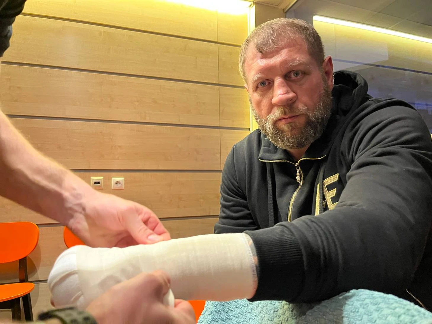 А вот Александр Емельяненко! Бойца уже тейпируют, совсем скоро главные поединки вечера.