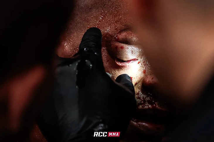 За две минуты до конца раунда Хамзин буквально рубанул своего соперника справа, нанеся Соузе огромную сечку и практически закрыв бразильцу глаз.
