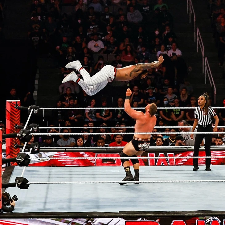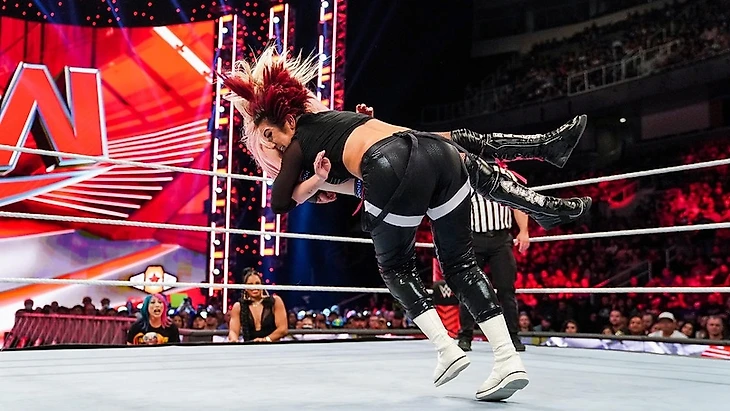 Пара киков, дропкик от Алексы, и еще пара коронных атак, но только до 2. Даже атакуя Блисс испытывала проблемы с ногой. Затем она умудрилась поймать Бэйли своим кроссбади, девушки обменялись сворачиваниями до 2, Алекса провела еще одно… и еще одно от Бэйли, все до 2. Блисс направила визави в угол ринга, и перевела Bayley-to-Belly в сворачивание до 2. В следующем эпизоде Bayley-to-Belly все-таки прошел, но Алекса вырвалась на счет 2. Тогда Бэйли затащила соперницу на угол для супер Bayley-to-Belly, но Алекса реверсировала его в сансет флип пауэрбомб до 2. Tornado DDT не прошел, Блисс снова испытала проблемы с коленом, и Бэйли поймала ее в сворачивание, положив ноги на канат. До 2, ибо Белэйр скинула эти самые ноги с этого самого каната, за что со спины ее атаковали СКАЙ и Кай, запустив в стойку ринга лицом. Аска вырубила обеих командных чемпионок, но от хип атаки у ступенек ДАкота ушла, так что пострадала только Аска. Блисс тем временем провела классический DDT, и Дакота Кай отвлекла рефери, позволив ИЙО сбросить Алексу, которая готовилась к Twisted Bliss с третьего каната. Rose Plant, и Бэйли одержала победу. Сразу после этого Damage CTRL атаковали Блисс. Аска поспешила на помощь, но ее тоже побили, а потом она получила еще и очень интересный мунсолт от СКАЙ. В ринге появилась Бьянка, которая вырубила всех, провела Бэйли лэриэт, решила выйти на фэйсбастер, но командные чемпионки напали на нее, и численное преимущество взяло свое. СКАЙ и Кай держали Белэйр, а Бэйли провела жесткий удар предплечьем. Rose Plant Бьянке. Бэйли взяла микрофон, напомнив, что она все контролирует, получает что хочет и когда хочет. И Бэйли хочет женское чемпионство RAW на Extreme Rules. Damage CTRL stand tall, на чем шоу вышло из эфира.