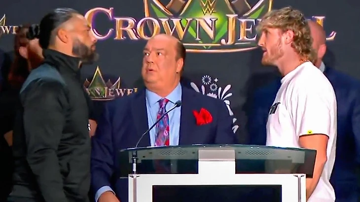 Кадры того, как зародилось противостояние Логана Пола и Романа Рейнса, чей матч пройдет на Crown Jewel в Саудовской Аравии.