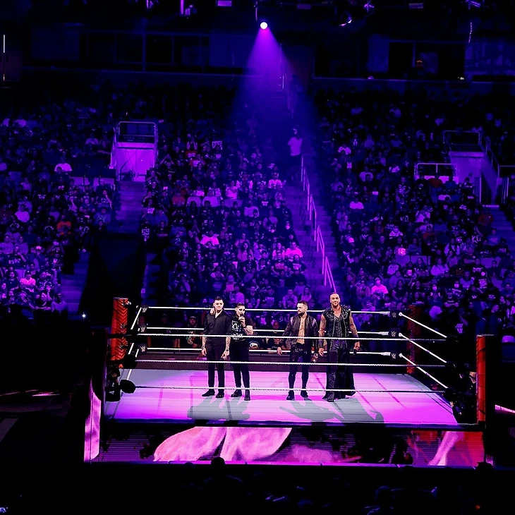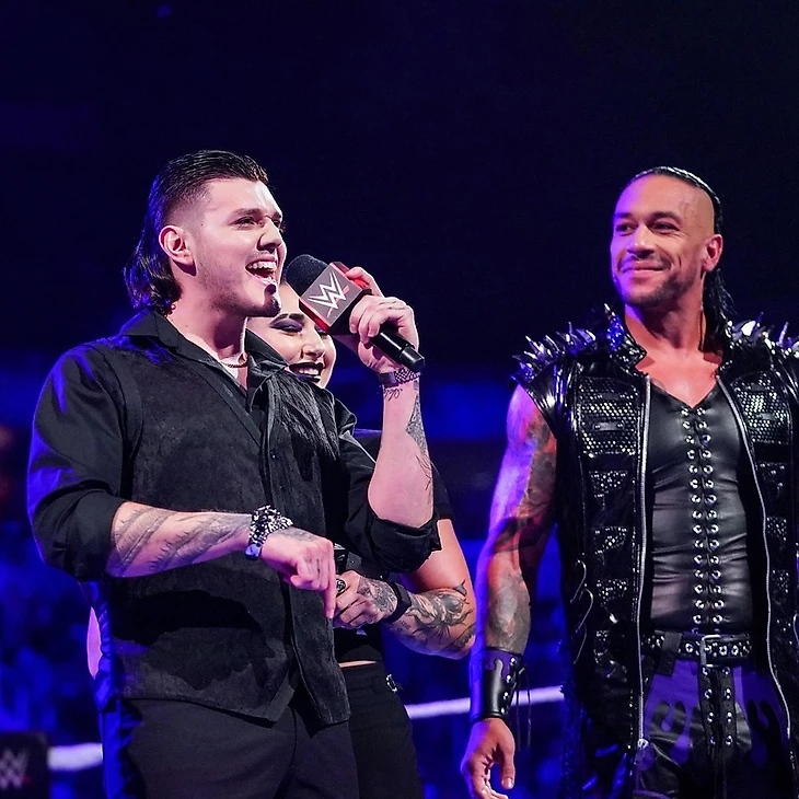 Judgement Day вышли в полном составе. Рипли опять что-то шептала Доминику на ухо, а он улыбался. Поднявшись в четырехугольник, они взяли микрофоны и напомнили, что на прошлой неделе они разобрались со всеми, кто стоял на их пути, доказав в очередной раз, кто управляет Mоnday Night RAW. И теперь, когда на их стороне Доминик, JD ничто не остановит, особенно учитывая то, что Дом стал мужчиной. Финн согласился с этим. Ведь нужна определенная смелость, чтобы встать против своих врагов, но для того, чтобы противостоять собственному отцу нужно намного больше смелости, а Доминик именно это и сделал. Прист сказал, что ему нравится Доминик. Этот человек доказал, что не хочет быть в тени и готов сам драться в своих битвах, выступив против Эджа в матче один на один. И если нам нужно напоминание о том, как прошел этот бой, что ж… Доминик стоит на ринге сейчас, а Эдж вообще стоять не может. Сидит там где-то у себя, травмированный и грустный. Рипли сказала, что «папочка» гордится Домиником. Он поблагодарил ее за такие слова. Публика начала неодобрительно гудеть. Все товарищи Доминика потребовали, чтобы зрители проявили уважение, а самому Дому посоветовали не обращать на фанатов внимания, но гул только усилился. Доминик тоже гордится собой. Он очень горд стоять на этом ринге со своей новой, настоящей семьей - Judgement Day. Финн сказал, что сейчас у них особенный момент, поэтому почему бы не запечатлеть его на фотографии? Фотограф сделал снимок, Балор хотел еще рассказать, как он «любит» Калифорнию, но заиграла музыкальная тема Риддла, а потом и Рея.