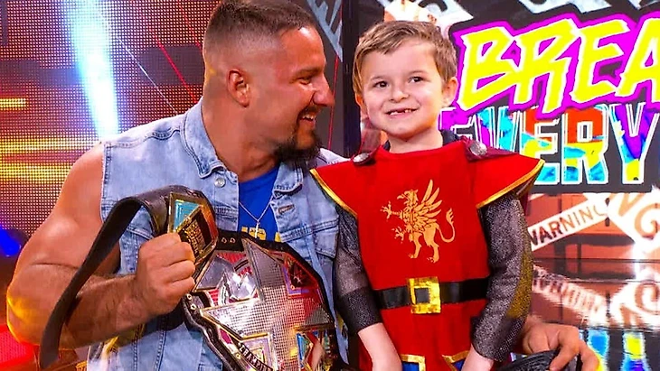 Брон Брейккер вышел на арену с ребенком из Connor's Cure Лэндоном «Завоевателем» Чейзом. Очевидно, чемпион NXT посмотрит матч за претендентство из первого ряда.
