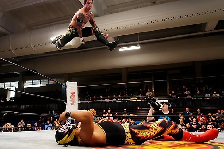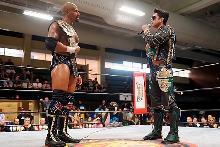 3) TJP победил Маскара Дораду. Это был реванш матча, который произошёл несколько месяцев назад и активно тизерился после возвращения Дорады в строй после увольнения из WWE. Тогда победил именно Дорада, хотя момент триумф был испорчен ТиДжеем его выходкой с кражей маски лучадора. В дальнейшем это повторилось спустя пару месяцев, когда в командном матче победили United Empire и тем самым у Пёркинса появилась возможность взять свой реванш. ТиДжей, кстати, вышел с одной из старых масок Дорады + он в настоящее время командный чемпион IWGP в полутяжёлом весе (Франческо Акира пока что не принимал участия в записях выпусков NJPW STRONG вообще). Что до матч в этот раз — тут он вышел поинтенсивнее первого в плане перехвата инициативы (если на старте Дорада уверенно обыгрывал Пёркинса, то потом ТиДжей вышел на перехват и выравнил положение — причём это всё вышло в рамках первой половины всего матча) и даже получился неким реальным спринтом по динамике за счёт разницы стилей: Дорада классический лучадор с отличным пониманием ринга как места для себя и даже использования его как собственного оружия, а ТиДжей сбивал разгонку от Маскары своими техничными манёврами, но при этом не доминировал с целью гасить темп боя. Также Пёркинс не забывал о возможности сорвать очередную маску с Дорады, правда в этот раз это получилось с трудом даже с первой попытки. По конец боя рестлеры так разошлись в эмоциях, что устроили парад суперкиков друг по другу (благо это вайбов от Young Bucks, что уже круто само по себе) и завершилось это дело Mamba Splash от ТиДжея прямо на апрон (что очень опасно, но там всё вышло вполне себе безопасно). А победил в матче TJP после того, как смог сорвать ранее развязанную им же маску с Дорады и тем самым переключив его внимание, атаковав вторым и полноценным Mamba Splash для победы (Личная оценка — 3,75);