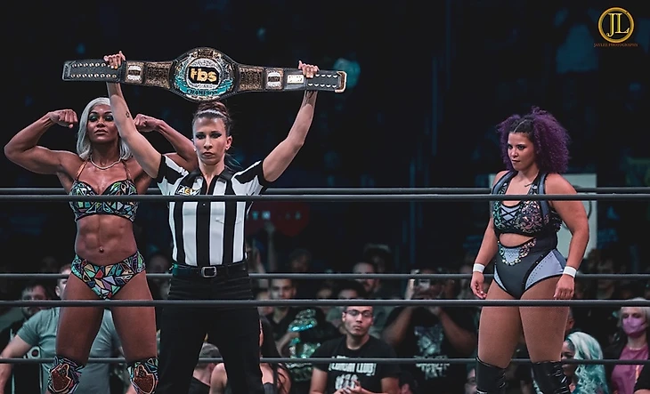 Джэйд Каргилл (ч) против Уиллоу Найтингейл - матч за женское чемпионство TBS.