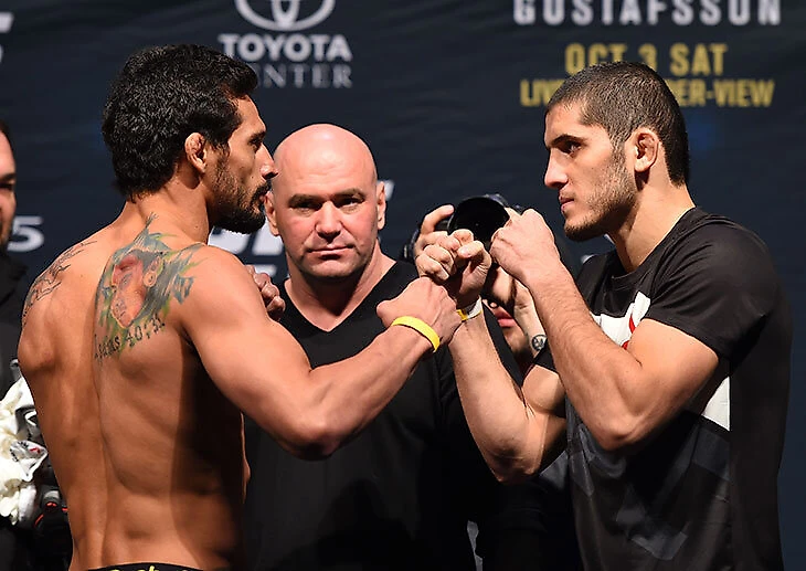 Неудача случилась 3 октября 2015-го, когда Махачев выступал на турнире UFC 192. Ислам проводил лишь второй поединок в промоушене, а его соперником стал 33-летний бразилец Адриано Мартинс, черный пояс по БЖЖ и неплохой дзюдоист.
