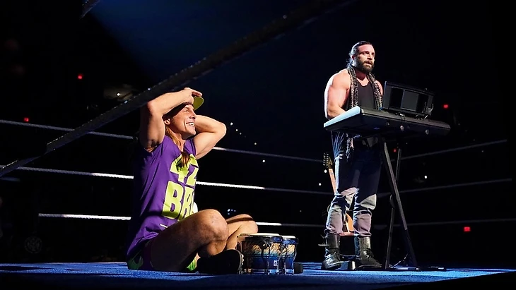 Прямо перед матчем, после стычки Роллинса с Мустафой Али (тут автор обзора, уже не в первый раз, умудрился потерять с концами свой же отрывок сегмента между Сетом Роллинсом и Мустафой Али + небольшой закулисный сегмент Али с Риддлом - так армянский недоМельтцер стал ещё и криворуким, ну помимо графоманства) состоялось возвращение Элайаса, который был на ринге с двумя гитарами и синтезатором.