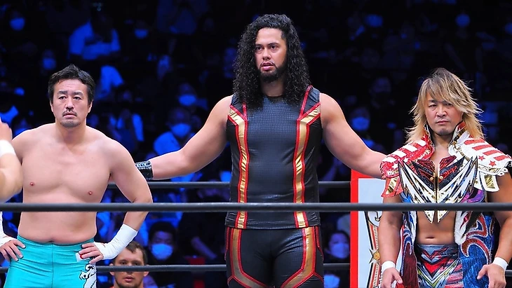 Джей Уайт (ч) победил Таму Тонга, защитив чемпионство мира IWGP в тяжелом весе (31:07).