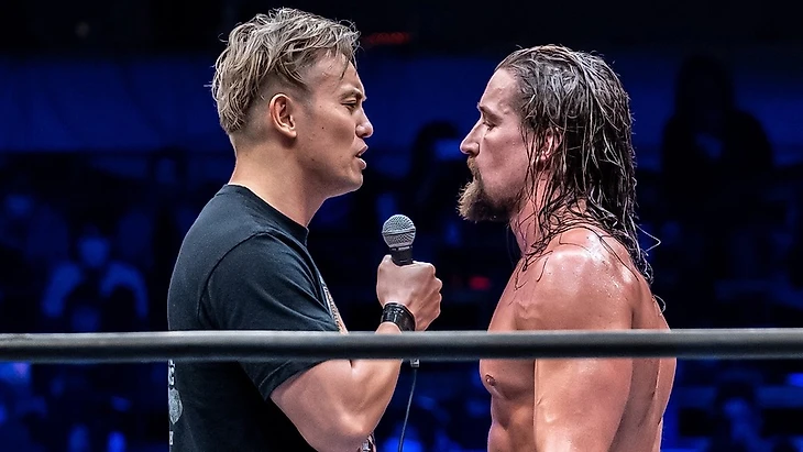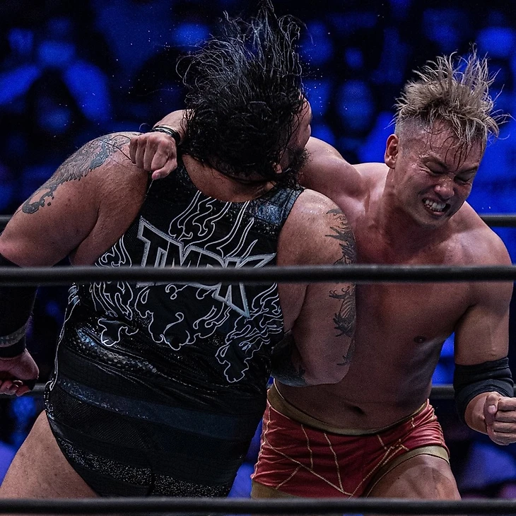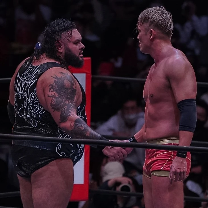 И в текстовом превью на сайте New Japan, и комментаторы в эфире представляли этот бой как превью к World Tag League 2022. Бой получился, конечно, не «бэнгером», но это был еще один очень крепкий командный поединок из андеркарда. В основном Хэйст работал с Сэйбром, отвечая за техничный рестлинг, а Таичи и Бэд Дьюд «Big Tits» Тито соперничали в том, у кого грудные мышцы лучше. Какое-то время Таичи страдал от слаженной командной работы TMDK, но в концовке Сэйбр получил «горячий» тэг и, выдав еще один симпатичный отрезок с Шейном, свернул в итоге Тито коронным European Clutch. После матча Зак и Хэйст попытались намутить какое-то рукопожатие, но запутались, и ZSJ просто забил. Победа DT, наверное, является правильным выбором, да и вообще, наверное, они и должны выигрывать Командную Лигу в этом году. Больше всего мне, правда, в этом бою запомнился не рестлинг, который был достойным, но не удивил, а вот эти мелочи, вроде «баталии грудных мышц» Таичи и Тито и запоротого рукопожатие Сэйбра и Хэйста.
