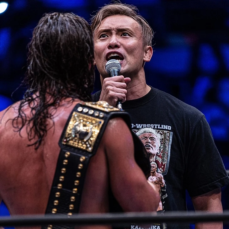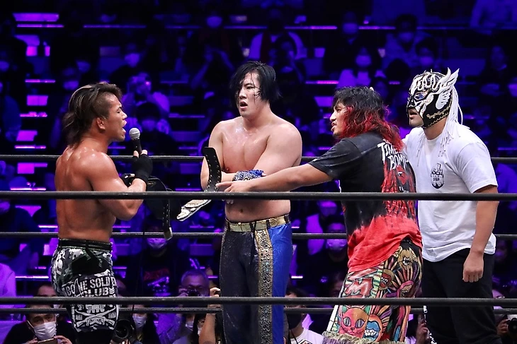 После санитарной паузы на ринге появились президент NJPW Таками Обари и президент сети TV Asahi Хиройоки Михира, чтобы объявить о введение нового титула – телевизионного чемпионства NJPW World, что также можно перевести, наверное, как телевизионное чемпионство мира NJPW, но «NJPW World» тут имеется ввиду именно как стриминг-сервис «Новой Японии». Пояс приурочен к 50-летию дружбы NJPW и TV Asahi, которое будет отмечаться в следующем году. Чемпион определится на главном шоу года – Wrestle Kingdom 17. Нам сообщили, что этот титул будет представлять светлое будущее NJPW. Матчи будут иметь лимит в 15 минут, что должно воодушевить рестлеров на более скоростной и динамичный рестлинг. Также Обари выразил надежду на то, что за пояс будут драться более молодые рестлеры. Турнир должен был начаться на Battle Autumn, и его матчи будут доступны для просмотра бесплатно в социальных сетях New Japan и на стриминг-сервисе.