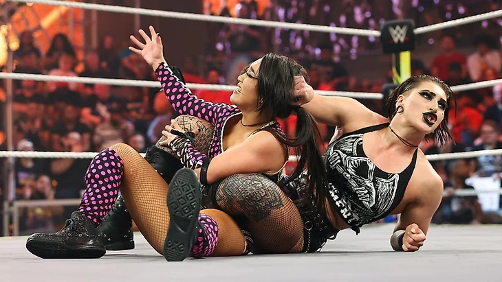 По ходу PiP рекламы Рипли продолжала доминировать, а Перес пыталась выжить, выйдя, правда, разок на безрезультатное сворачивание. Претерпев долгие бади сиззорс, Роксанна ушла от пары стомпов и отправила оппонентку подсечкой на канаты. Серия лоу киков от Перес, после которой она увернулась от биг бута, провела несколько апперкотов, и обмен реверсами завершился jawbreaker от Перес. Она добавила к этому апперкот в углу, от следующего Рия ушла, но Роксанна увернулась от атаки в этом же углу, и Рипли влетела в стойку ринга плечом, упав за пределы ринга. Тут же Рокси шарахнула суисайд дайв, девушки вернулись в ринг, Перес забралась на третий канат, и Рипли остановила это восхождение парой ударов. Суперплекс Роксанна пресекла в последний момент, направила соперницей головой в тернбакл, зарядив затем супер харриканрану до 2. Фанаты стали чантить «NXT!», Перес нанесла еще несколько ударов предплечьем, заблокировала хэдбатт, провела шотган дропкик, но атаку в углу Рия реверсировала в очередной фэйсбастер до 2. Избежав Riptide, Роксанна почти вышла на Pop Rocks, но Рипли справилась, и Перес отвелклась на Доминика, чего хватило для того, чтобы представительница Judgement Day поймала ее хэдбаттом, а Riptide поставил точку в матче.