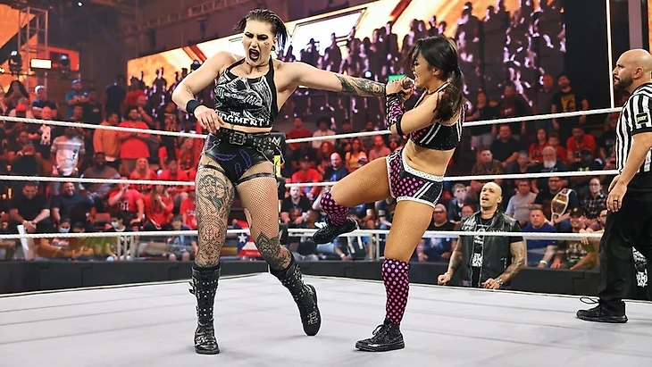 Мы все еще в Подготовительном Центре WWE на арене Capitol Wrestling Center, что в Орландо, Флорида, и шоу открывал один из 2 «Pick Your Poison» матчей. Как мы помним, Рокси договорилась на «Смэке» с Ракель Родригес, а Кора «привела» для своей оппонентки по НН Рию с RAW. Рипли сопровождали Дэмиэн Прист, Финн Балор и Доминик Мистерио. Фанаты встретили австралийку чантами «Welcome Back!», а когда она после стартового лок-апа отправила соперницу за пределы ринга, они завели «Rhea's Gonna Kill You!». Вернувшись в четырехугольник, Перес стала работать над рукой бывшей чемпионки NXT и RAW, даже попыталась выйти на сворачивание, но Рипли оказалась слишком мощной. Не почувствовав пары чопов, австралийка провела собственную серию ударов, что позволило ей захватить контроль. Пара ударов в поясницу, и Роксанна безрезультатно попыталась отбиться, однако смогла реверсировать следующую атаку в харриканрану, отправив противницу на рингсайд. Та ушла от суисайд дайва, но Рокси отправилась за пределы ринга, првоела удар, и харриканрана с апрона была реверсирвана в фэйсбастер с электрического стула на апрон.