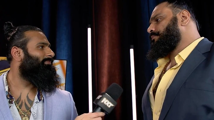 Уэс Ли и Ора Менса готовились к своему матчу в раздевалке. Ли побладодарил Менсу в борьбе с Мело и Триком, а Ора заявил, что его напарник сегодня может быть спокоен, ведь он выступает на одной стороне с мастером командных баталий и бывшим командным чемпионом NXT UK. Внезапно их атаковали Кармело Хэйс и Трик Уильямс, но те быстро отбились, и драка перетекла на арену, где судьи разняли парней. А после рекламы нас уже ждал их командник.