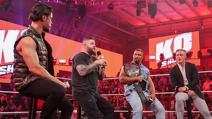 Кевин появился в футболке в память о Дасти Роудсе. Он обнялся с Букером Ти, поздоровался с Виком Джозефом и поднялся на ринг. После рекламы все уже было готово к шоу, но отдельный выход получил только Брон Брейккер, Драгунов и МакДона уже сидели на своих стульях в четырехугольнике. Зрители для начала поприветствовали Оуэнса чантами «KO!», а он объявил о том, что сегодня очень особенный выпуск его шоу. Кеву позвонил Шон Майклз, попросив провести эпизод KO Show с участниками мэйн-ивента субботнего PLE. Учитывая то, что Майклз - это причина, по которой Оуэнс и стал рестлером, канадец не смог отказать. Фанаты стали чантить «HBK!». «Всегда пожалуйста, Шон» - сказал Оуэнс, добавив, что он здесь для того, чтобы все прошло мирно, никто не устроил погрома и чтобы мероприятие не переросло в разрушение, ведь его нужно приберечь до шоу с названием «Хэллоуинское разрушение». Однако, Кевину уже не нравятся шансы того, что он справится со своей задачей, ведь он уже видит кое-кого в ринге, кто уже накаляет обстановку и пытается залезть в голову соперников, да и вообще является здоровым жутким чудаком - парень по имени ДжейДи МакДонтГуглМи. Он спросил, в чем проблема ДжейДи. На самом деле, с ирландцем так неприятно находиться в одном помещении, что Оуэнс хочет принять душ после одного только взгляда МакДоны на себя.