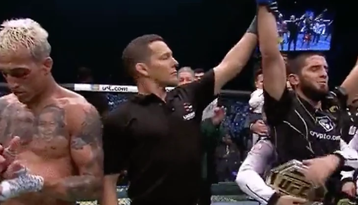 Реакция Ислама Махачева сразу же после победы над Оливерой – просто посмотрите на его лицо, когда на него надевали пояс