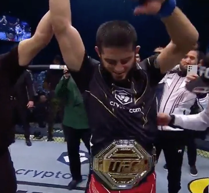 Махачев – новый чемпион в легком весе! Ислам забрал пояс удушающим в топовом поединке против Оливейры. После боя эмоции заквашивали – просто посмотрите на лицо Ислама в тот момент, когда на него надевали пояс. Чистое счастье.