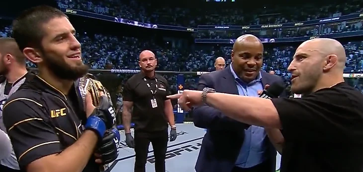 Волкановски вышел в клетку и ответил Хабибу и Махачеву: «Давайте сделаем это!»