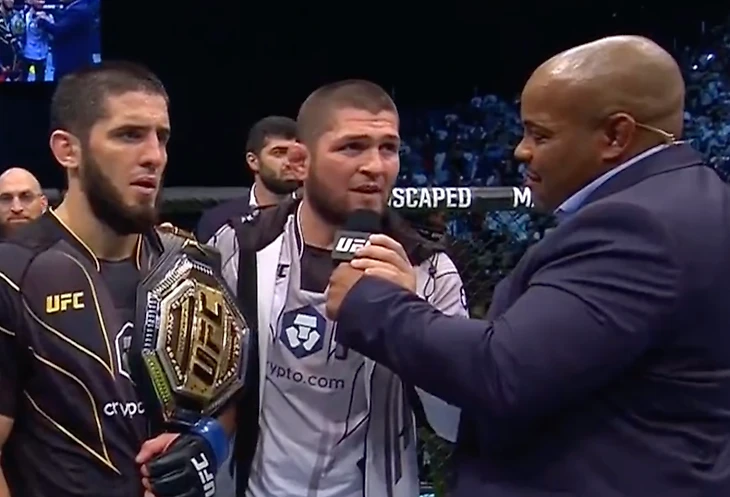 Попало в трансляцию: реакция Волкановски, когда Хабиб и Махачев прямо в клетке сказали, что хотят устроить с ним бой