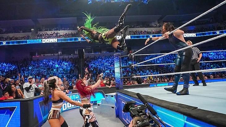 Damage CTRL (ИЙО СКАЙ и Дакота Кай) (ч) против Ракель Родригес и Шотци - матч за женское командное чемпионство WWE.
