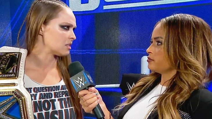 Кайла взяла интервью у Ронды. Проведет ли чемпионка SmackDown сегодня открытый вызов, ведь фанаты WWE ждут этого от нее, учитывая ее слова ранее. Ронда ответила, что собирается проводить открытые вызовы, чтобы доказать, что является лучшей, а не чтобы развлечь фанатов, которым ничего не должна. Ведь она отдала фанатам всю себя, но не получила ничего, кроме ненависти в ответ. Она не собирается и дальше гнаться за одобрением зрителей. Она не для них возвращалась в строй и не для них выигрывает. Ронда вырвала пояс из рук «золушки в блестках», потому что фанаты хотят побед не лучших, а своих любимчиков. Что ж, теперь им придется терпеть лучшую. Она собралась уйти, но Брэкстон еще раз уточнила, что сегодня открытых вызовов не будет. Ронда пообещала открытый вызов на следующей неделе, когда она свалит наконец из Огайо.