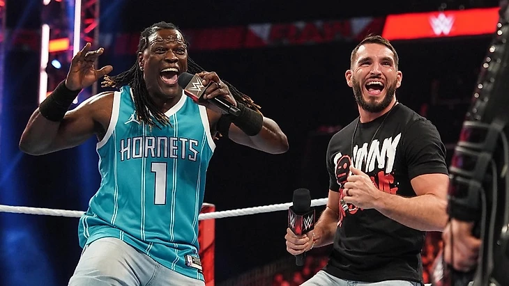 Гаргано вышел, чтобы сказать, что Миз - кусок говна. Они оба знают, что не это произошло на самом деле. Майк настолько думает только о себе, что не в курсе, что Чиампа не пропал. Джонни списался с Томом 2 минуты назад, Томмасо отсутствует на шоу, потому что травмирован, а Миз - лжец. Если Миз хочет, чтобы Гаргано и Лумис пропали из жизни Миза, Майк должен сказать правду Или Джонни подует в свисток, и Миз знает, что произойдет. Гаргано спросил, хотят ли зрители, чтобы он посвистел. Те ответили положительно. Но Миз заткнул их, сказав, что говорит правду. Truth after truth буквально… И тут появился Ар-Труф. Он вышел под свою музыкальную тему, прочитал свой рэп, поднялся на ринг и предложил публике пошуметь. Он сказал, что Миз хотел «to tell the Truth». Что ж, Труф здесь. «Шта?» - спросил Миз. Гаргано сказал, что Труф прав, ведь, технически, Ар-Труф - настоящая правда. «Ты не говорил, что хочешь сказать правду?» - задал Труф вопрос. Майк спросил, неужели все с ума сошли. Переели местной кухни, которая засорила им мозг, и местные жители уже ничего не соображают. Ар-Труф посоветовал Мизу не обсуждать в его родном штате местную кухню. Майк внезапно согласился с ним. Как он мог подумать, что мозг такого размера, как у жителей Шарлотт, может понять его, однако «Эй-Листер» решил обратиться к зрителям, смотрящим шоу по телевизору. Труф остановил его. Одно дело вот так вызвать Ар-Труфа и не сказать ему о секрете. Но оскорблять местную кухню, Труф в родном штате не позволит. Ар-Труф спросил, хотят ли фанаты на арене увидеть, как Майку надирают зад. Миз ответил, что не хочет драться. Джонни удивился. Он, конечно, знает, что Декс порезал шары Миза, но не знал, что «Эй-Листер» остался совсем без яиц из-за этого. Миз психанул из-за этого и вызвал Труфа на бой. «You can't handle the Truth!» - сказали Гаргано и Рон синхронно.