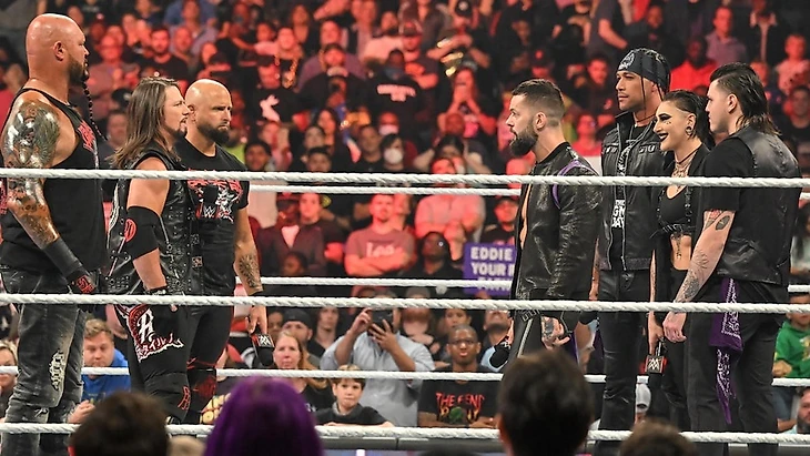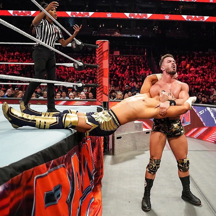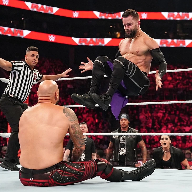 То, что Дом сделал с «Феноменальным» неделю назад было лишь небольшой толикой того, что ждет O.C…. Дома прервал выход этих самых O.C. Стайлз потребовал у Доминика заткнуться. Ведь RAW проходит в Шарлотт, а тут люди разбираются в хорошем рестлинге. И Мистерио к нему никакого отношения не имеет. Дом хочет сравнивать себя с Эдди Герреро? Доминик - это представитель поколения Джеймса Эллсворта. Карл, Люк и ЭйДжей поднялись на ринг, а JD сделали пару шагов назад. Стайлз сказал, что Доминик не сможет прятаться за Judgement Day вечно, ведь со временем О.С. разберутся с представителями Judgement Day по одному. Финн прервал его. Не «Феноменальному» спрятавшемуся за «Клубом» упрекать кого-то в том, что он прячется. За «Клубом», который основал Балор, кстати. Более того, с тех пор как ирландец покинул этот самый «Клуб», все, кто пришли после него, выезжали на наследии «Принца». Сегодня же в этого город приехали Judgement Day, и с ними можно сойтись лицом к лицу, но JD быстро убирают тех, кто встает перед ними. Андерсон перебил его, сказав, что пора Финну перестать болтать. Настало время напомнить Северной Каролине, что Карл Андерсон - самый жесткий парень в этом здании. Поэтому он предложил освободить ринг и сойтись им с Балором в матче 1 на 1 прямо сейчас. Вызов был принят.