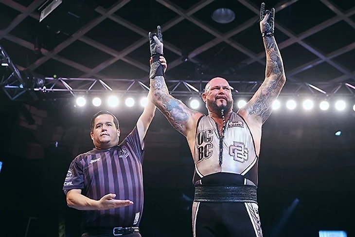 – Прямо во время анонса всех матчей на выпуск комментаторов бренда Иэна Риккабони и Алекса Кослова посетил Кевин Найт, молодой американский лев 2-го поколения LA Dojo. Он от лица самого себя и The DKC бросил вызов на титульный бой против победителей сегодняшнего боя между Aussie Open и Team Filthy.