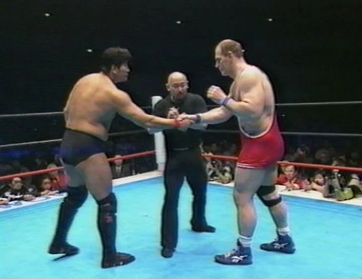 Соперником Сан Саныча был не лучший японский боец всех времен, а бывший рестлер и шоумен, который дрался с Халком Хоганом и Андре Гигантом. Да, Маэда – человек, сильно повлиявший на индустрию смешанных единоборств Японии, став одним из создателей легендарного промоушена Rings. Ведь именно под знаменами Rings дебютировал на тот момент еще неизвестный Федор Емельяненко. Но все-таки Маэда был рестлером, а не бойцом – его победы были постановочными.