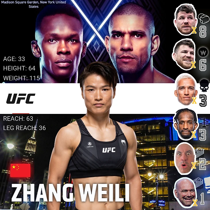 Статистика рассчитана на основании только боев в UFC, а стикеры показывают лидеров статистики UFC и текущие показатели бойцов, по таким категориям как ·количество боёв в UFC, ·количество побед в UFC, ·количество побед финишем в UFC, ·количество побед решением в UFC, ·количество бонусов за выступление вечера, ·количество бонусов за бой вечера.
