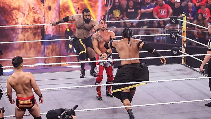 Начал матч Санга и провел пару мощных атак, сменившись с Виром для двойного сплэша. Вир провел пару маневров, отправил соперника в угол и предложил его партнеру забрать тэг. Тот не горел желанием, поэтому Махаан заставил его, зарядив ещё несколько атак, отказавшись чувствовать чоп. Смена с Сангой, ещё один сплэш, пара мощных атак, второго парня закинули в ринг, а потом добили «легального» связкой из сайд слэма и элбоу дропа со второго каната. После матча Indus Sher зачитали промо. Они уважают братьев Крид, равно как и вселенная NXT уважает бывших командных чемпионов. Однако Сангa и Вир не видят к себе такого отношения. В Индии к ним относятся как к селебрити, чего не скажешь об Америке. И Indus Sher не хотят больше терпеть дизреспект. И единственный способ завоевать уважение по мнению Вира и Санги - это уничтожить Кридов. «Изатните, братья, другого выхода нет».