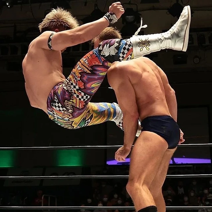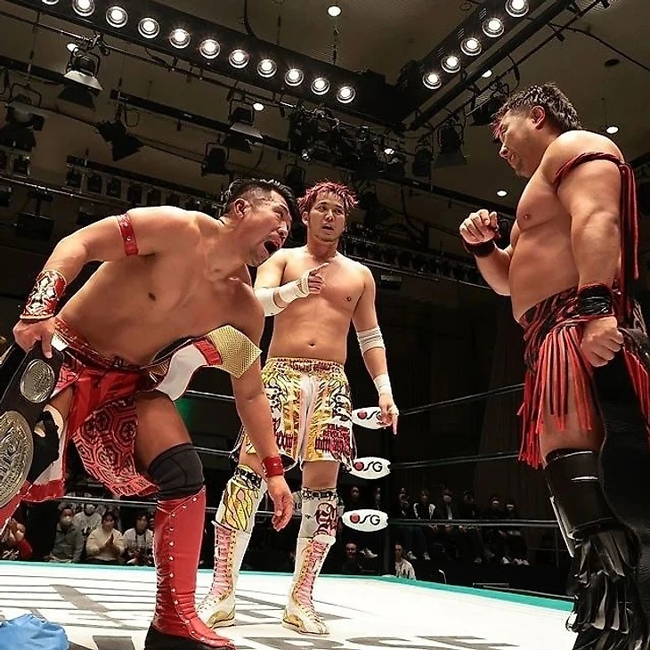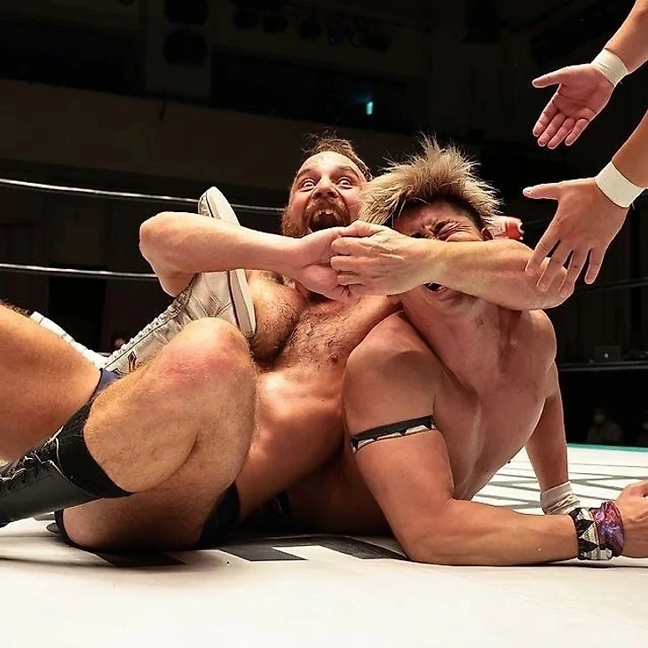 1) Kongo (Шуджи Кондо и Хаджиме Охара) победили Seiki-gun (Атсуши Котоге и Сейки Йошиока), став новыми командными чемпионами GHC в полутяжёлом весе. Что до прошлых чемпионов, то они взяли титулы 29 сентября на Grand Ship In Nagoya у группировки Stinger. А затем с подачи Тадаске у них началась обширная программа с Kongo. Первая попытка «красных» провалилась на шоу от 30 октября, несмотря на паритет на дорожных шоу. От полутяжей в составе Kongo по сути отдувались Охара и Тадаске, в то время как Шуджи Кондо активно так работал в Dragon Gate с ветеранами против остальных местных группировок + отрабатывал промоутирование будущего кросс-шоу DG с NOAH. Любопытным тут моментом также можно выделить связь Кондо с Йошиокой — ибо Шуджи был одним из тренеров Сейки и оба активно работали в WRESTLE-1 и ZERO1. Оба даже как команда отличились званием интернациональных чемпионов NWA в лёгком весе. Плюс у обоих был очный матч 1 на 1 на WRESTLE-1, в котором победил Кондо. Несмотря на некоторые не особо колоритные моменты со стартовым отрезком от Охары, в целом команды показали контраст своих тактических действий. Конго прилично доминировали, но не превращали это в скучное и душнильское действие, а фейсы Seiki-gun за счёт своей скоростной активности не давали продыху хилам-полутяжам. Ярче всего тут показали себя Шуджи Кондо и Сейки Йошиока, ибо они показали между собой яркий контраст ударного скоростного страйкинга (Йошиока) и силового прямого как удары молота доминирования (Кондо). Правда как мне показалось, из-за того что стартовые 5-7 минут и остальное время были отданы Охаре, чтоб он не казался каким-то побочным подсосом, Шуджи не успел показать всей своей силовой мощи, ибо он не просто примитивный качок-полутяж. Отрезки с Йошиокой показали мощь потенциала их взаимодействий, да и с Котоге были хорошие столкновения с техничной динамикой, правда чересчур короткими. Победили Kongo после связки из King-Kong Lariat от Шуджи на Йошиоке, который сразу же дал команду Охаре заставить Сейки сдаться от Muy Bien. Йошиока долго сопротивлялся, пока Кондо держал в углу Котоге, но всё-таки сдался от давления болевого (Личная оценка — 4,25). После боя Котоге настаивал на реванше и вскоре он был официального анонсирован на ноябрьский ивент The Best 2022;