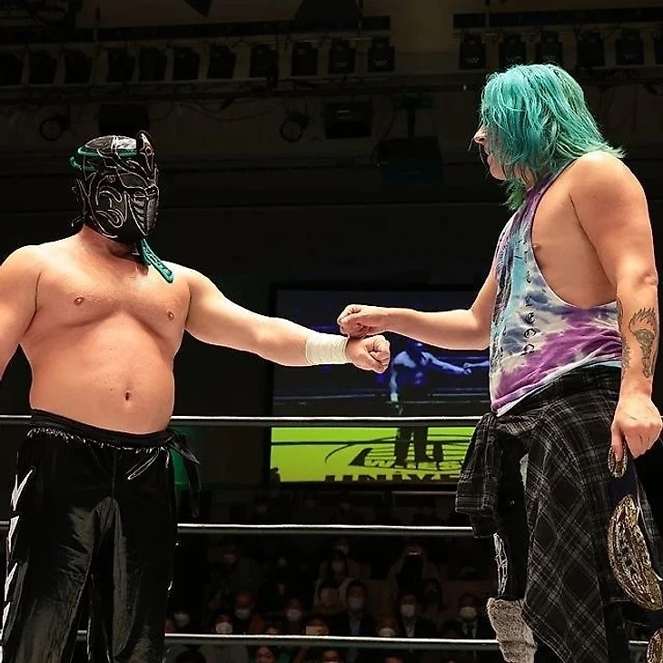 4) Эль Ихо дель Доктор Вагнер-мл. победил Масакатсу Фунаки, став новым национальным чемпионом GHC (в открытом весе). Что до забега Фунаки как национального чемпиона, то он начался в самом начале этого года с громкой победы над Кено, одним из сильнейших топов NOAH. Причём поражение Кено не стало громогласным, ибо Фунаки решил присоединиться к Кено и его группировке, что повысило авторитет Kongo. На момент столкновения с лучадором у Фунаки уже 6 защит в разных по специфике матчах против крепких и не менее опасных на ринге соперников, пусть и преимущественно от ветеранов пуроресу. А сам лучадор просто бросил вызов Фунаки, ибо за последние полгода работы в NOAH он в составе Sugiura-gun толком ни с кем не пересекался на ринге из представителей Kongo – только проиграл Кено в рамках турнира N-1 Victory, на 1-ом дне. Также Вагнер-мл. успел проявить себя в рамках турнира новоиспечённого промоушена Big Lucha в Мексике (его основателем является бывший мировой чемпион PWG, бывший мировой чемпион ROH, и неофициальный чемпион Тройной Короны мексиканского инди-промоушена The Crash и нынешний новоиспечённый мировой чемпион Big Lucha и свежий подписант AEW Бандидо). А вот этого матча я вообще не понял — я понимаю что стиль Фунаки не подходит под абсолютно каждого рестлера, но я никогда не видел до этого кого-либо, чтоб у него бывали такие проблемы с грэпплингом и борьбой в партере с Фунаки. Но Доктор Вагнер-младший оказался «уникумом», ибо даже в простых позициях в партере он выглядил так беспомощно, что мне даже казалось что Фунаки намеренно отпустил лучадора для борьбы в стойке. Просто потому что иначе матч длился бы фиг пойми сколько, пока бы Доктор Вагнер-младший додумался бы до того, как проще всего разбить контроль Фунаки на земле. И на это всё дело ушло чуть ли не половина времени матча. Потом конечно оба попытались расшевелить ход боя, но и тут оказалось — химии просто нет. Вагнер по сути не понимал как точно работать с оппонентом, так как у него не было опыта матчей с таким как Фунаки и ему подобным по стилю. Так что, как по мне, Вагнеру есть чему обучаться по части грэпплинга, ибо тут конечно это промах колоссальный. Вторая половина боя была конечно по активнее и лучше, но это всё равно мало как спасло бой в целом. Ещё и результат не в тему — ибо отдавать титул мало того, что иностранцу, так и ещё такому ограниченному на ринге из-за стиля... Не прям тотальное фиаско, но ничего позитивного я сказать не могу. Тем более что в руках Фунаки титул начал сиять серьёзными красками и Фунаки получил ауру неприкасаемости как чемпион. А тут вот такое... дело. Победил Вагнер после мунсолта (Личная оценка — 2,75). После празднования на ринге с флагом Мексики у ринга зсветился Йошики Инамура и принялся смотреть пристально на титул, а затем поднялся на ринг с микрофон и бросил вызов на бой. Вагнер, заговорив немного на английском, добавил акцент и принял вызов на матч. Официально бой пройдёт на шоу The Best 2022;