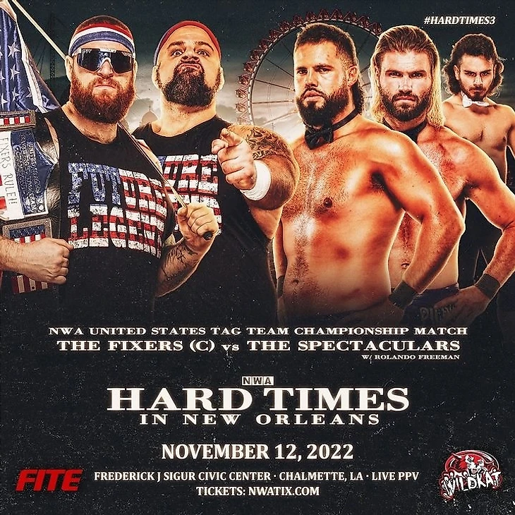 6) The Fixers (Джэй Брэдли и «шар-разрушитель» Легурски) победили The Spectaculars (Брэди Пирс и Раш Фримэн), защитив командные чемпионства США NWA. Данные титулы были возрождены лично Билли Корганом в предверии PPV в честь 74-ой годовщины NWA, с тем пояснением что командный дивизион не должен быть ограничен только одним комплектом командных мировых титулов, особенно внутри США. Титулы же как таковые уже существовали с 1962 по 1974 года, но потом были упразднены. А после возвращения – разыграны в большом командном баттл-рояле, где участвовали как местные команды и гости из инди, так и достаточно статусные звёздные команды (к последним можно отнести La Rebellion, Hawx Aerie и The OGK aka The Kingdom). В дальнейшем рейн новых чемпионов начал складываться за счёт матчей с участниками того баттл-рояла — первым отхватили и отлетели Gold Rushhh, затем уже в нетитульном гандикап-матче отлетели The lll Begotten. Теперь же пришла очередь ретро-стиляг, которым после того поражения удалось одержать ряд командных побед, которые могли бы дать им шанс бороться и за основные командники. А матч получился довольно весёлым, хотя Fixers конечно не особо впечатлили качеством своего командного рестлинга, пусть и работали в олдскульном силовом стиле. Другое дело их оппоненты, Spectaculars, которые несмотря на свой не менее специфический ретро образ, показывали куда более динамичный командный рестлинг и имели наиболее результативное общее доминирование во время матча. Причём у них появился особый фанат в лице Вельвет Скай. Также был момент вмешательства от Роналдо Фримэна, даже парочка таковых, но это не стало минусом, тем более что это особо и не отвлекло чемпионов от своей общей задачи. Победили The Fixers после двойного чоукслэма на Раше Фримэне (Личная оценка — 3,25). После этого боя у чемпионов состоялся другой титульный бой с другой командой из того самого баттл-рояла с NWA 74, с Country Gentlemen (Энтони Эндрюс и ЭйДжей Казана). Чемпионам удалось отстоять свои титул в открытии нового 5-го ТВ-сезона NWA USA через неделю после шоу в Новом Орлеане;