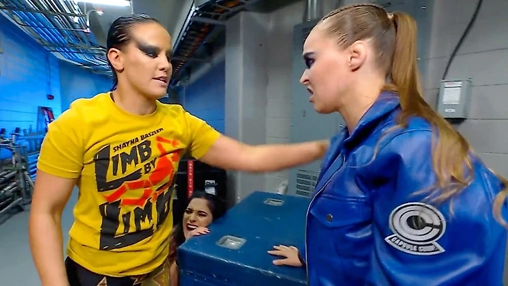 4) Ронда Раузи и Шейна Бэйзлер победили Шотци Блэкхарт и Ракель Родригез. Прямо перед матчей ММА-шницы атаковали фейсов, причём Ракель они умудрились не просто избить вхолостую, а нанести травму левую руки крышкой об один из ящиков с оборудованием. Всё это с расчётом сорвать ранее анонсированный поединок. И возможно даже титульный матч Раузи с Шотци. Закадычные подруги на ринге успели поиздеваться над побитыми ими оппонентками, так как они стали примером того что ждёт остальных на их пути. Только вот Шотци всё-таки вышла на матч и была готова биться с остальными в гандикапе, чему и дали старт. Однако спустя время и Родригез, которую должны были отправить в больницу, появилась на ринге и пыталась уравнять шансы для Шотци. Но силы всё равно оказались неравными именно из-за последствий нападения Раузи и Шейны за кулисами – Ронда заставила Родригез сдаться от болевого на травмированную руку (Личная оценка — 1,75). Позже за кулисами в медкабинете арены Шотци сказала в интервью, что помимо перелома до матча, теперь у Ракель и вывих локтя впридачу. И Шотци не намерена так просто это оставлять без наказанным, ведь Раузи и Бэйзлер просто беспредельщицы, думающие что им всё дозволено. Но так как Ракель не побоялась всё равно выйти на матч с травмой, Шотци готова отдать ей должное несмотря на поражение. Так что Шотци не просто готова победить Раузи и взять титул, но и по полной программе отомстить, показать что Ронда с Шейной не смогут избежать кары (Видимо стоит ожидать особой коалиции в дивизионе против Раузи и Бэйзлер, да и Шотци не уберут из титульной гонки так скоро как это кажется);