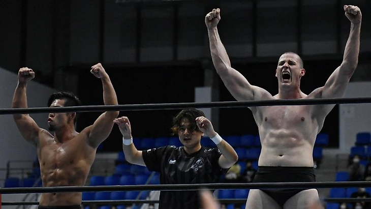 Стандартный матч от молодых львов, сработались Косей и Оскар, последний привыкает к рингу в Японии, что не может не радовать.