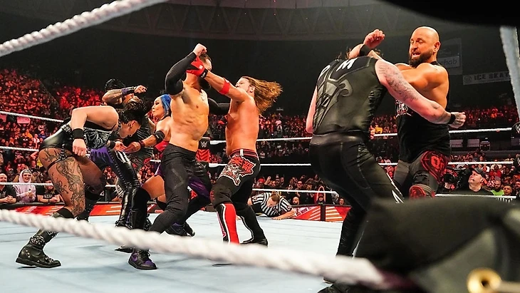 2) Judgment Day (Финн Балор, Дэмиен Прист, Рия Рипли и Доминик Мистерио) победили The O.C (ЭйДжей Стайлз, Карл Андерсон, Люк Гэллоуз и Мия Йим) в межгендерном командном поединке. Бой возник именно как продолжение женского одиночного оупенера, так как сам бой сорвался из-за вмешательств со стороны парней обеих группировок. А затем ЭйДжей Стайлз с ринга сказал, что на Survivor Series всё закончится, но он ошибся и теперь требует того самого матча обеих группировок в полном составе. Пришёл новый рефери и Судный День пошли в атаку на The O.C. А так как первый час шоу шёл без перерывов, то удалось оценить матч без пауз. Выдался он долгим конечно, но и с таким составом он не должен был быть коротким. По сути это был практически полноценный реванш с Crown Jewel IV в Аравии, так как тут уже были и девушки, хотя их участие тут выдалось минимальным из-за оупенера. Бодрый командник выдался, где в целом все участники получили свой момент славы, да и работали команды слаженно, не уступая друг другу. Также не было ясно на чьей стороне расстановка сил, несмотря на очень очевидное монотонное доминирование со стороны Судного Дня, которое однако The O.C удавалось парировать и отвечать хорошими контратаками. Правда всё-таки общий темп мог быть и подинамичнее, на том же матче с Аравии там подобных проблем не наблюдалось. Победили Судный День, таковую им принесла Рипли после Riptide на Йим (Личная оценка — 3,75);